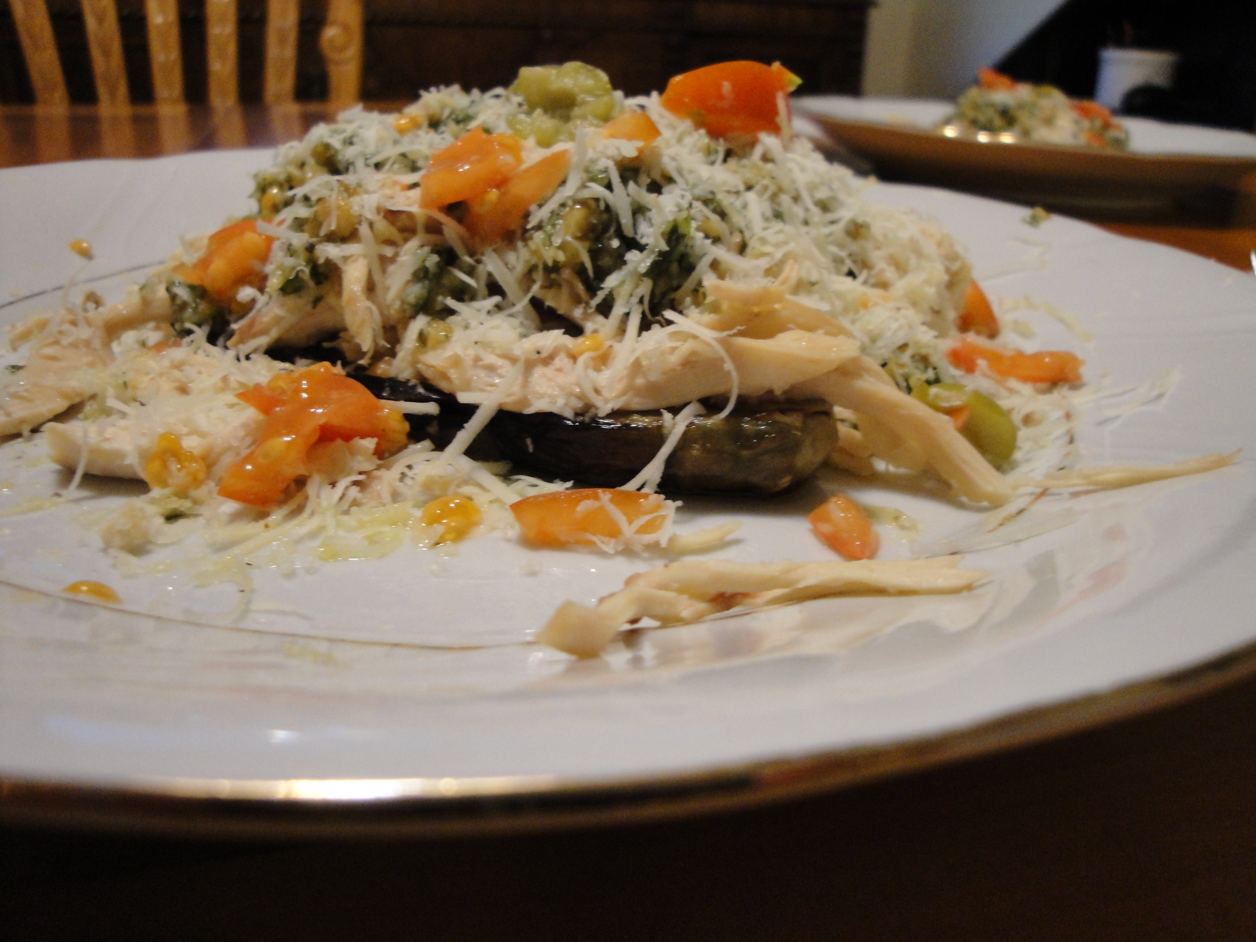 - When the eggplant is done, top with pesto, and cheese (I used the rest of
