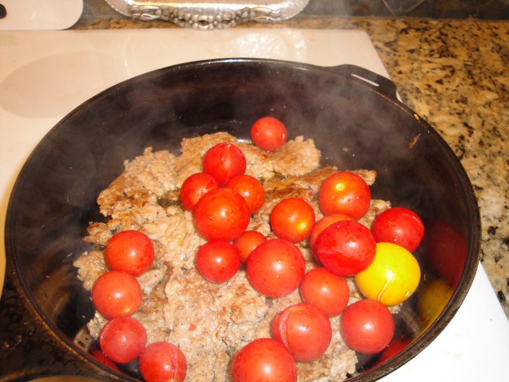 - Brown sausage in olive oil, on both sides. Add fresh cherry tomatoes and when tender, crush down with spoon add a bit of balsamic vinegar, and fresh herbs, and fresh ground pepper.google – k2 unlimited content