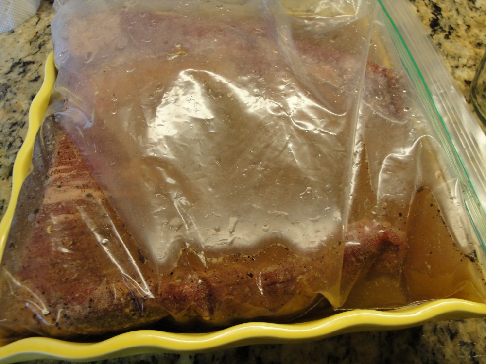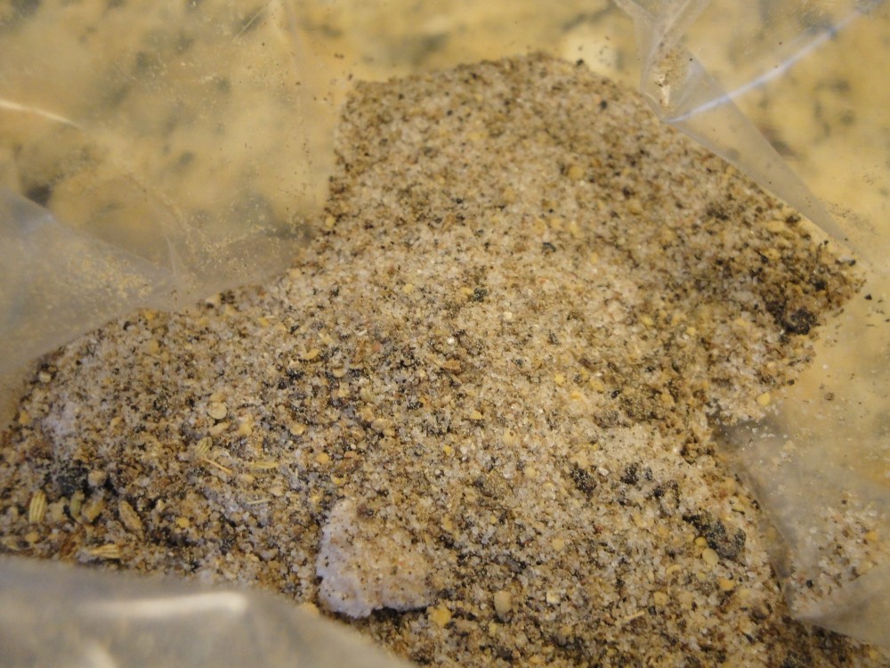Combine the salt and peppers in spice mill. I use one coffee grinder just for spices. Grind to coarse, and put in large enough plastic bag for the meat and some filtered water. Grind the remaining spices and add to bag. Add the brisket, and work pressing the spices into the meat and coating evenly. Let the meat rest 15 minutes to suck in the spices. Place the meat bag and all in a dish where it will lay flat. Add the water so that most the meat is covered. Refrigerate turning the meat a couple of times a day for 2-4 days. My dry aged Brisket came from Dave’s Meat Service in Modesto CA.(see my Farmstead page for info)