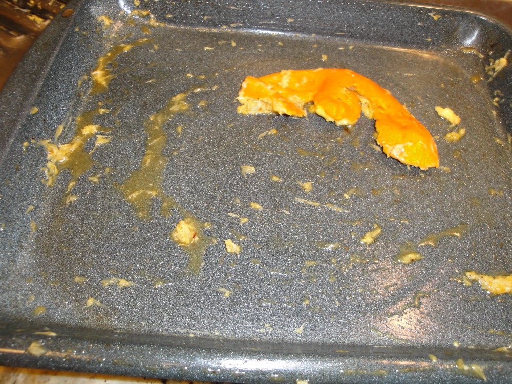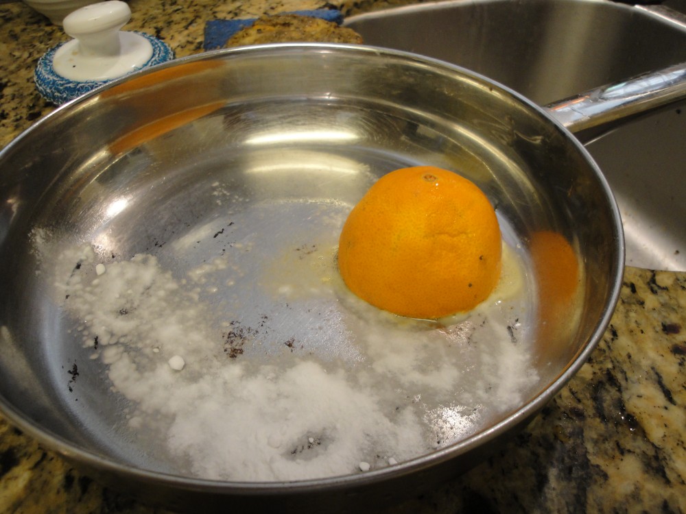 Easy Clean Up! This was a happy accident. While reaching for a scrubber I absent mindedly pick up an orange half and start using it. Wow it worked! My little fry pan was really bad, almost throw away bad. I started with orange rub and baking soda leaving it over night. That lifted out about 95% of the burnt on gunk. On the remaining 5% I redid the orange rub and soda, set it on low on the stove, and 5 minutes later it wiped out clean. The roasting pan had a lot of built up, stains and debris. First I rubbed it with the orange half, then added baking soda to make a paste. Let it sit for 20-25 minutes, came back used the orange half like a scrubber and most everything wiped off clean. The broiler pan I had roasted bacon in. After removing the bacon drippings, I rubbed everything with the orange half, let it sit, and it wiped clean with a hot wet soapy cloth. The stainless steel sink cleaned up great with the orange half, only needed a bit of orange/baking soda paste for the strainer. Amazing simple little things that really work.