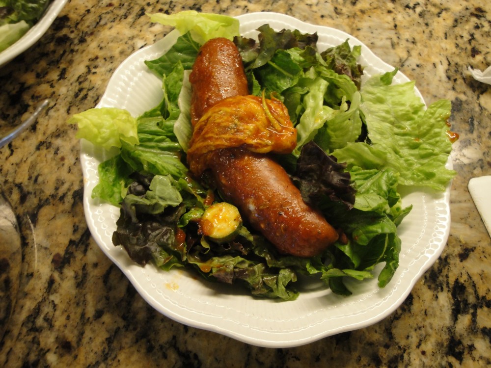 Salad with Marinara Sauce, Andouille Sausage & Cream Cheese for Two