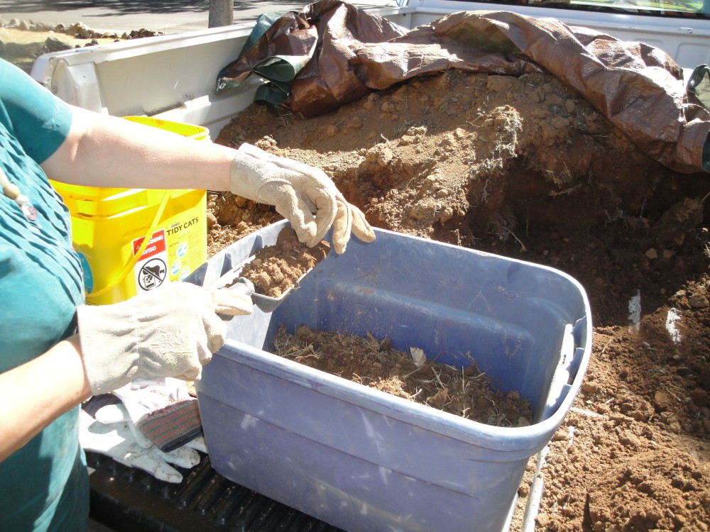 1. Scott my husband, went up to the foot hills to a patch of bare land in the family and dug up dirt. It seemed like good clay dirt. At home we sifted thru the dirt to remove stuff like glass, tin, rocks and other debris. After many test bricks, Scott got his recipe: 2 parts concrete sand to 1 part clay dirt.