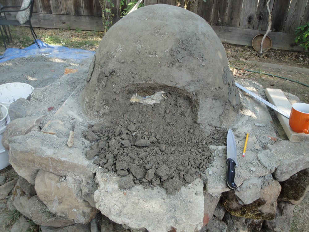 10. Cutting the door. We let it dry over night. Our door needed to be 13 inches across by 10 inches high. I measured it out, marked it. It cut easily with the knife. I really love the look and shape of the oven and base. Can’t wait until we get the insulation layer on and finish! Time for bread and pizza, roasted vegetables and meats.