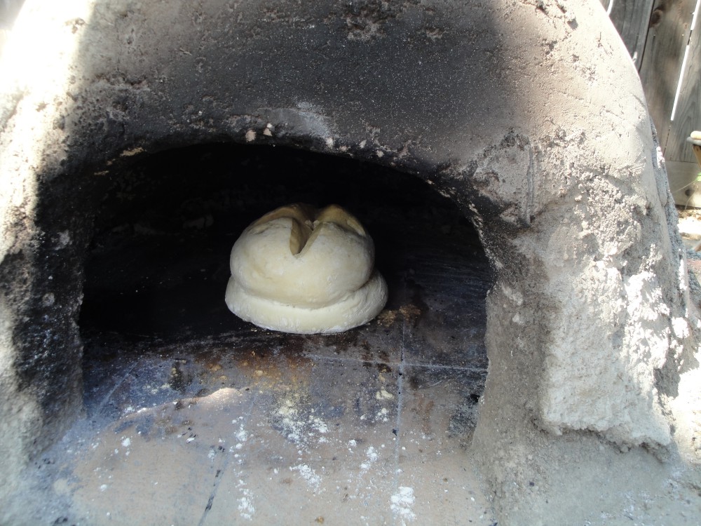 Very simple pizza, just sauce, cheese, Aidells jalapeno salame, and black olives. The pizza was the best I’ve ever made! And I make great pizza. It’s that much better from the cob oven.