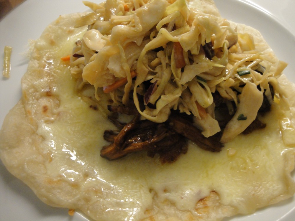 Great fun dinner! A true infusion of cultures, place and time. Pulled pork, slow roasted in my green sauce, Okie Guacamole, Sourdough Tortillas, Sweet and Tangy Coleslaw, made this an unforgettable meal. The Berkshire bone-in shoulder roast was melt-in-your-mouth succulent. Charred, then slow roasted in my E-Z green sauce. We ate soft tacos, built with the luxurious pork, fresh from the pan sourdough tortillas, some cheeses, and creamy coleslaw for a bit of acidity and crunch. Two salsa; Chile Verde and Okie Guacamole, gave us a little “lagniappe” over the top, we love. Farmstead Heritage Berkshire Pork from “Dave’s Meat Service”.