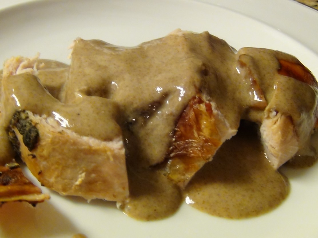 Pictured with Paleo, Gluten Free, Low Carb Chia Seed Gravy Sauce