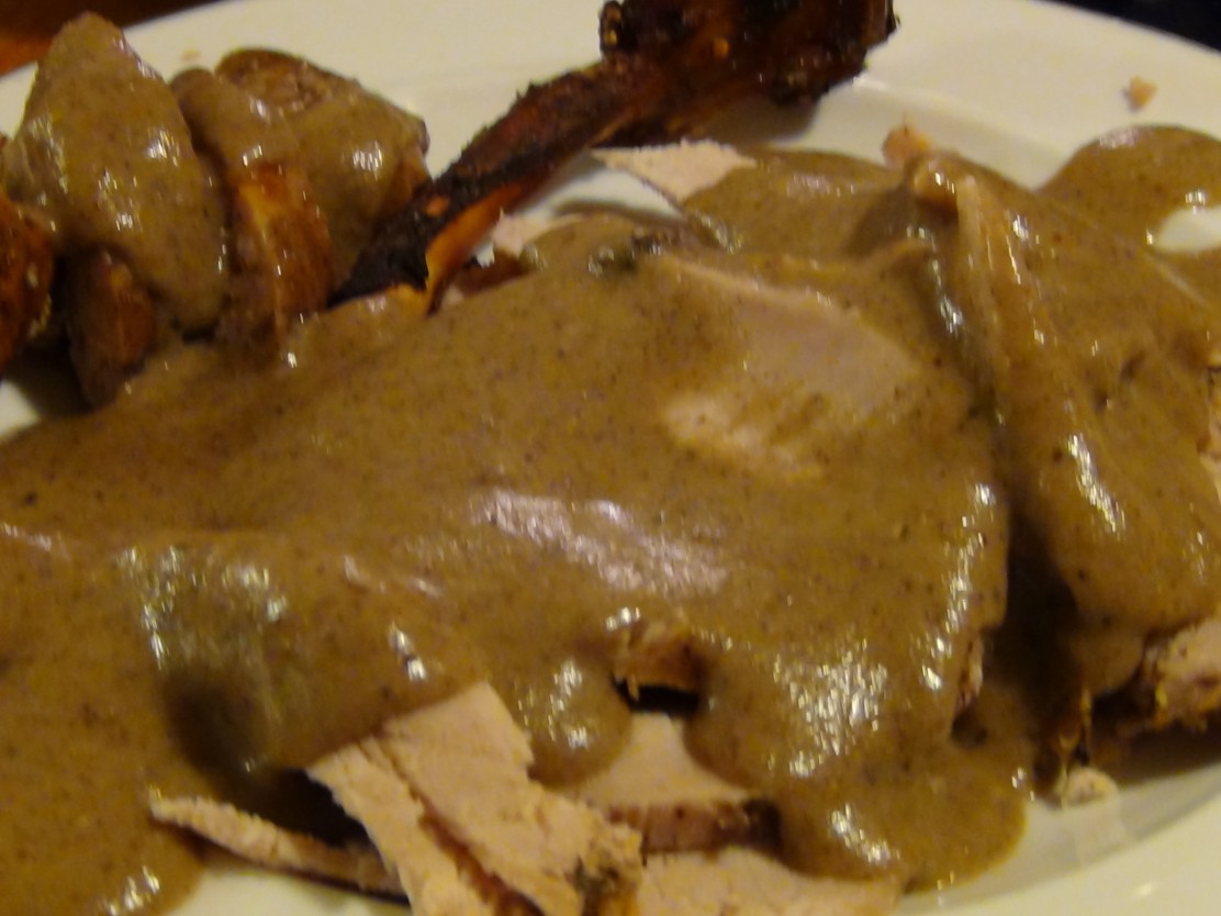 While roast is resting, add soaked chia seeds pan drippings, onion and apple to blender, and puree. Heat sauce if needed, slice roast and cover with sauce.