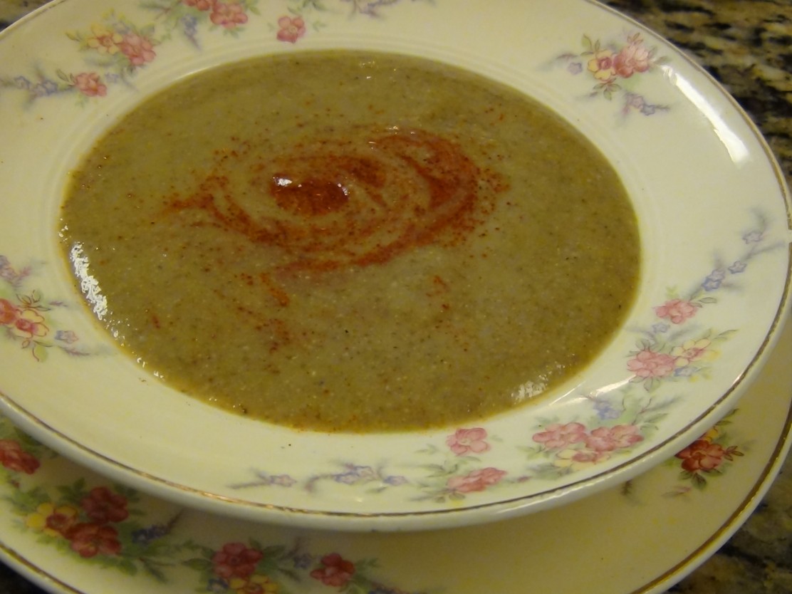 On lowest setting warm pre-made bone broth* see recipe above. Place chia seed & water in blender. Leave it to soak. Peel squash, remove seeds, slice thin. Rinse garlic heads, remove loose skin. Slice in half. Drizzle olive oil over garlic. Roast squash and garlic in 300°-325° oven. Flip for even roasting. Done when slightly soft to touch, about 20-30 minutes. Grind white/black peppers and fennel seed in spice grinder, or mortar and pestle. When cool enough to handle remove garlic from skins. Purée chia seed mixture, squash, garlic, adding broth while running. Continue until smooth. Mix in spices, except red pepper. Gently heat, stir a bit, soup can stick. Serve in warm bowl. Top with a sprinkling of red ground pepper, or paprika.