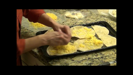 Make sure crab is at room temperature before starting. Brush tortillas with butter on both sides. Partly brown in 350°-400° oven. Turn over for even toasting. In my oven this takes about 5 minutes or less on each side. Remove from oven. Sprinkle cheese evenly on each tortilla. Return to oven until melted. Remove from oven top evenly with crab and greens.