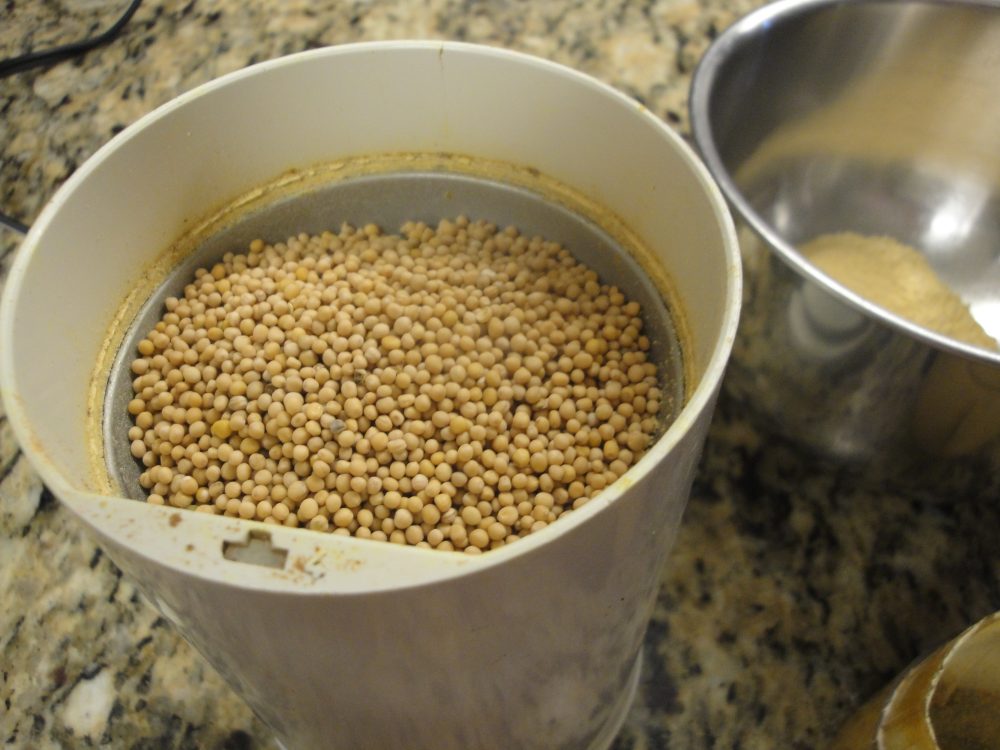 Grind 3 tablespoons yellow mustard seed to just cracked.