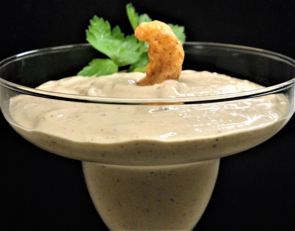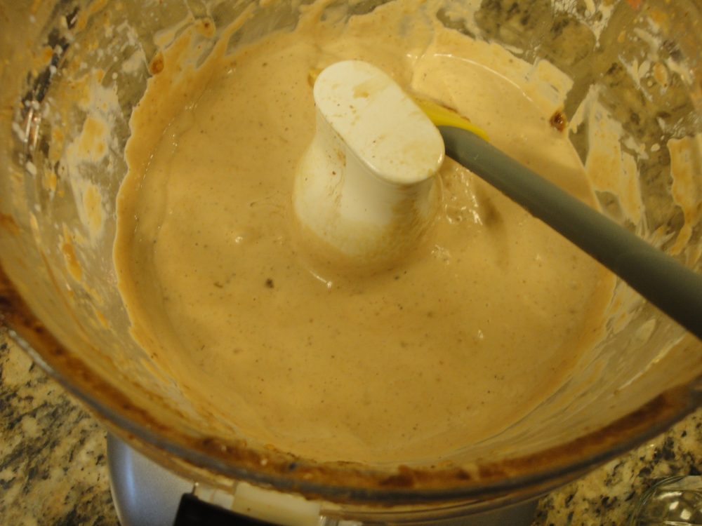 Caramelize onion in bacon drippings. Process yolk, onion,