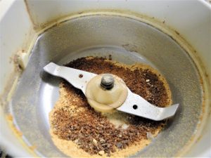 Powder in spice grinder or mortar & pestle.