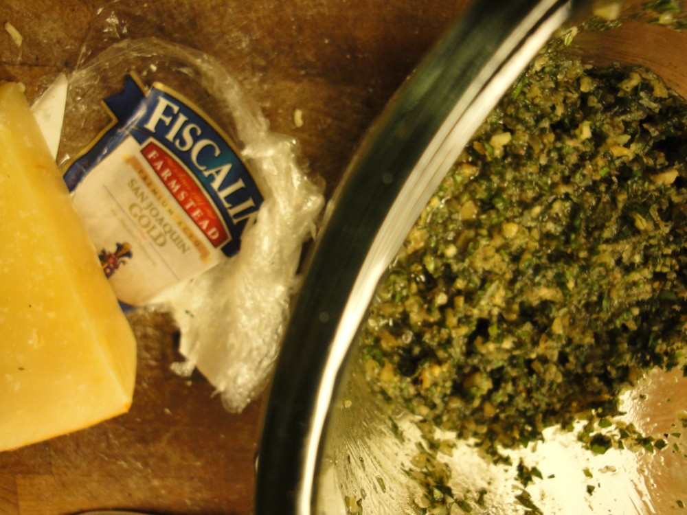 Hand Cut Pesto 2Pesto 2, made with Fiscalini* farmstead San Joaquin Gold cheese, Four K Farms* Chandler walnuts, & basil from my back yard. This new recipe makes an incredible, sauce. First the cheese is superb, and second the raw Chandler walnuts (soaked to sprout and then dried) take this already great paste to a whole new level. For our dinner I topped eggplant staeks with the pesto, some of my home-made mozzarella , home-made ground beef, shiitake mushrooms and a bit more of the Fiscalini*. Paired with Black Sheep* Zin, it was a fabulous dinner. Check out Fiscalini Farm’s Website: http://www.fiscalinifarms.com/ |