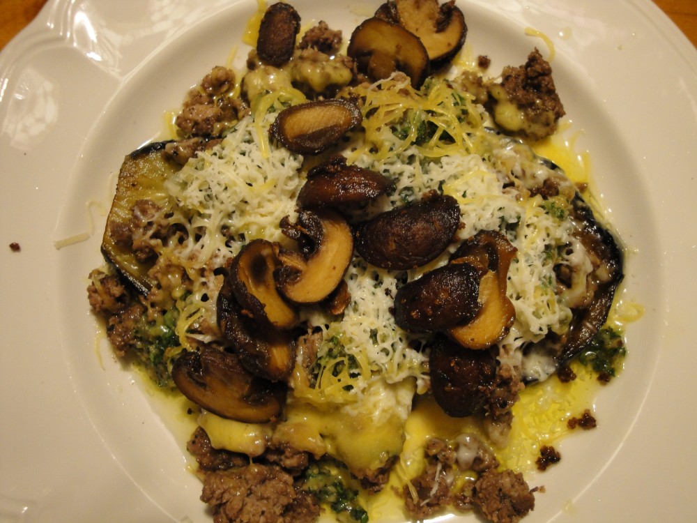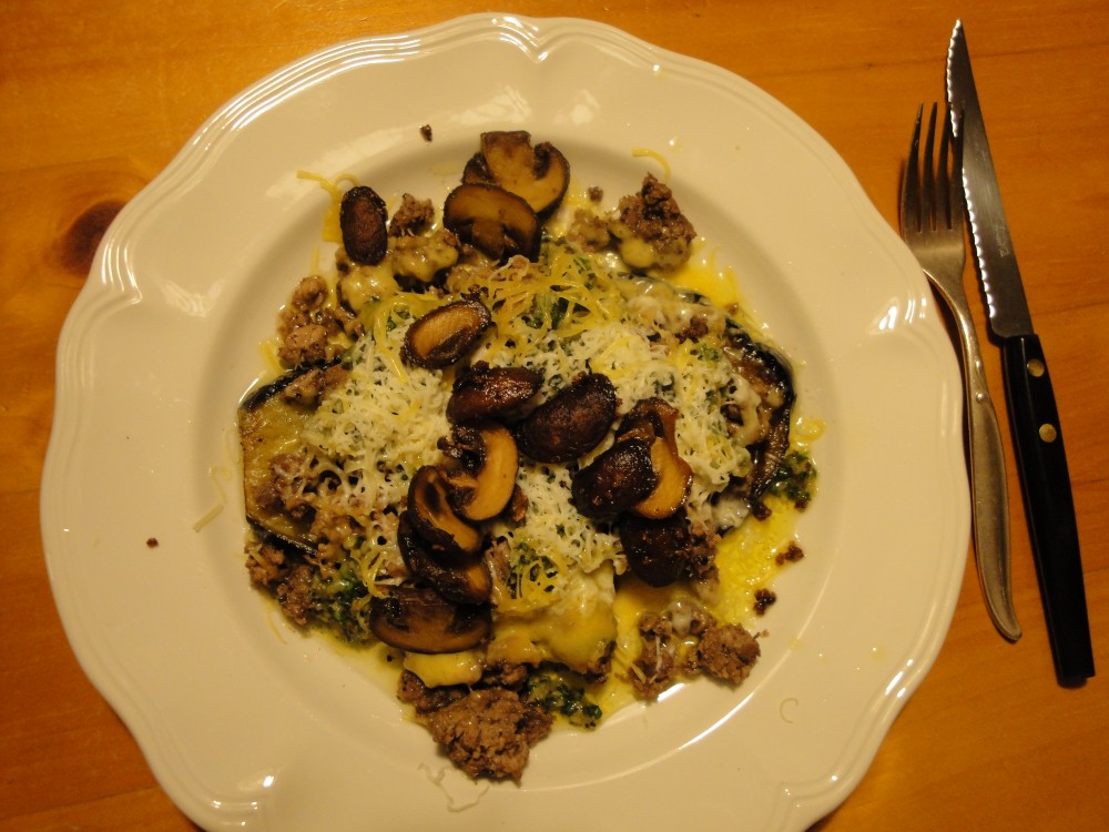 Eggplant Pesto MealEggplant with Pesto, Ground Beef, Mushrooms and Cheeses 2 Slices center cut eggplant about 1/3 inch thick Pesto Sauce (see video “Hand Cut Pesto”) I often change it, and use chandler walnuts, instead of pine nuts. Ground beef, a little more than a cup, cooked. 4 oz of 2-3 different hard cheeses 3/4 cup mushrooms, I like the brown criminis. Olive Oil Garlic, sea salt & pepper to your taste Slice eggplant, and cover both sides liberally with olive oil. Heat a pan to med-low. Cook the eggplant about half the time covered and half not. This combines both steaming and sautéing. After 4-5 minutes turn them over, and cook the other side. Stick a fork in it, if it’s tender it’s done, also it’s nice to have a little browning. Remove. Add the ground beef and spices, a little more olive oil, remember not above med-low heat with olive oil. Cook and remove. Sauté the mushrooms, and remove. Now build it, turn the pan down to low heat, lay in the eggplants, cover with, pesto sauce, ground beef and top with cheeses, and mushrooms, cover with lid and let them set until the cheeses are starting to melt. Serve hot and enjoy. |