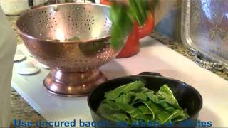 Organic Home-Grown Chard & Healthy Bacon VideoOrganic Home-Grown Chard & Healthy Bacon. Nourishing delicious home-grown chard, with healthy bacon. Greens with bacon is an old tradition. Use NO nitrates or nitrite uncured bacon. Do not eat raw. |