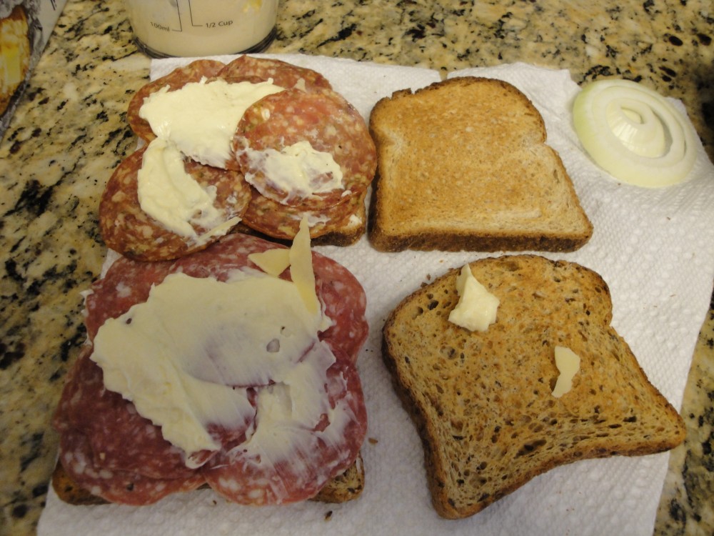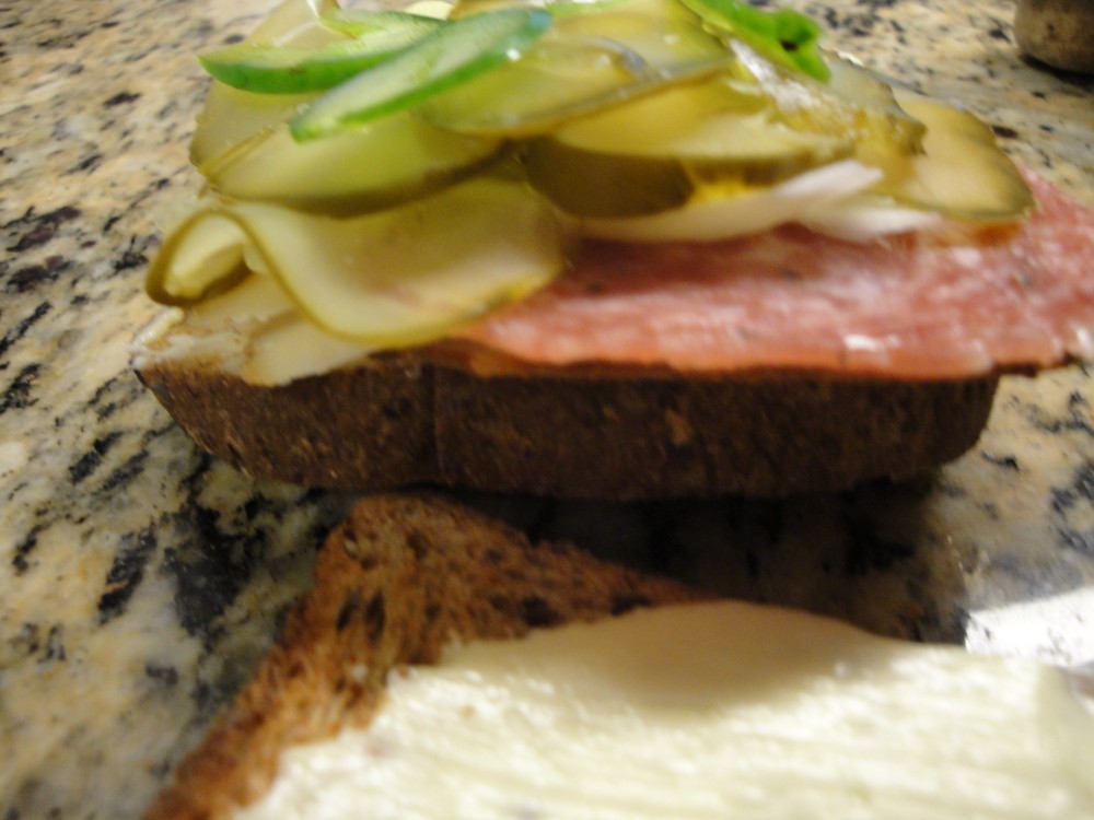 Artisan Cheese of the day, Tomme from Winters Cheese co.I love artisan cheese, life is too short to not enjoy these luscious treats. Made by real hands on artists, in small batches, not machines. What these few cheese makers do are masterpieces, not carbon copies or computerized clones, but true works of art. Now comes the part where you will be scratching your head, like if this stuff is so great, why are you putting it in a sandwich? Because it makes a good sandwich great. Yes you need to pair it with the other ingredients that work, but yes an already unique sandwich, and yes even a low-carb diet sandwich, can be raised to exceptional heights, with artisan cheese. Recipe below pictures: Health benefits, are tremendous from these ingredients: Low Carb sprouted bread, Tomme cheese, home-made mayonnaise, Bubbies dill pickles, (probiotic and sliced thin), lactic acid culture (no synthetic nitrates) salami, garden fresh onions, and jalapeño pepper slices. |