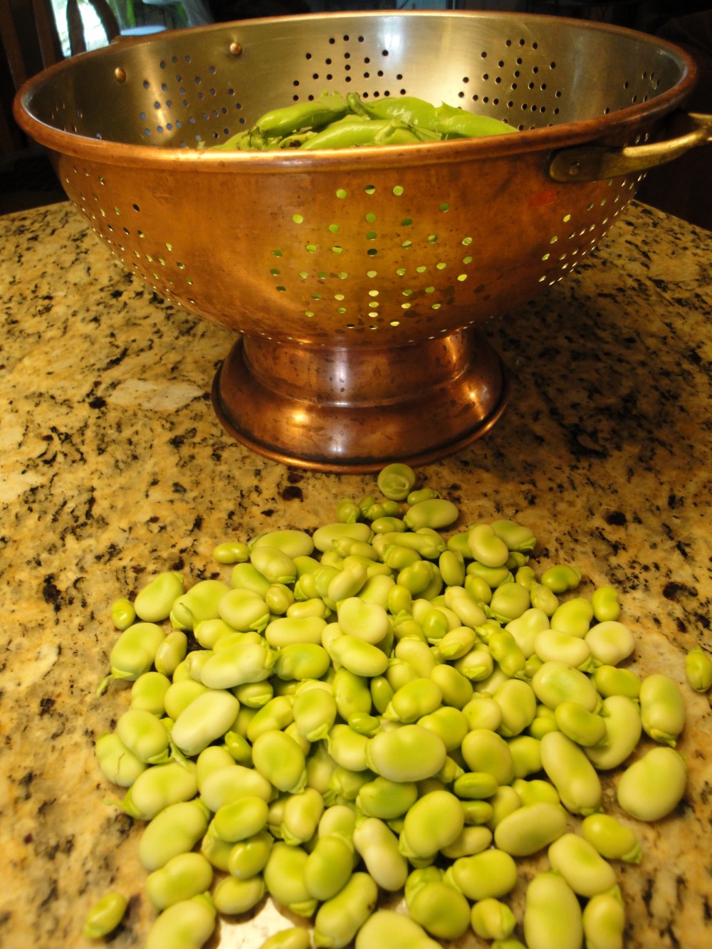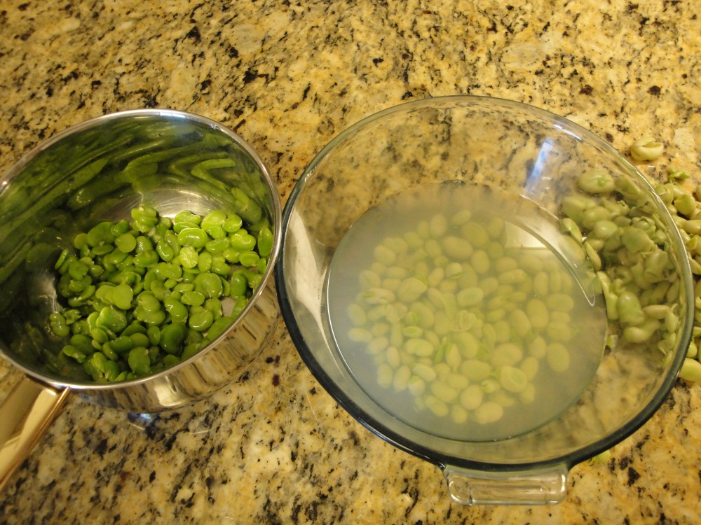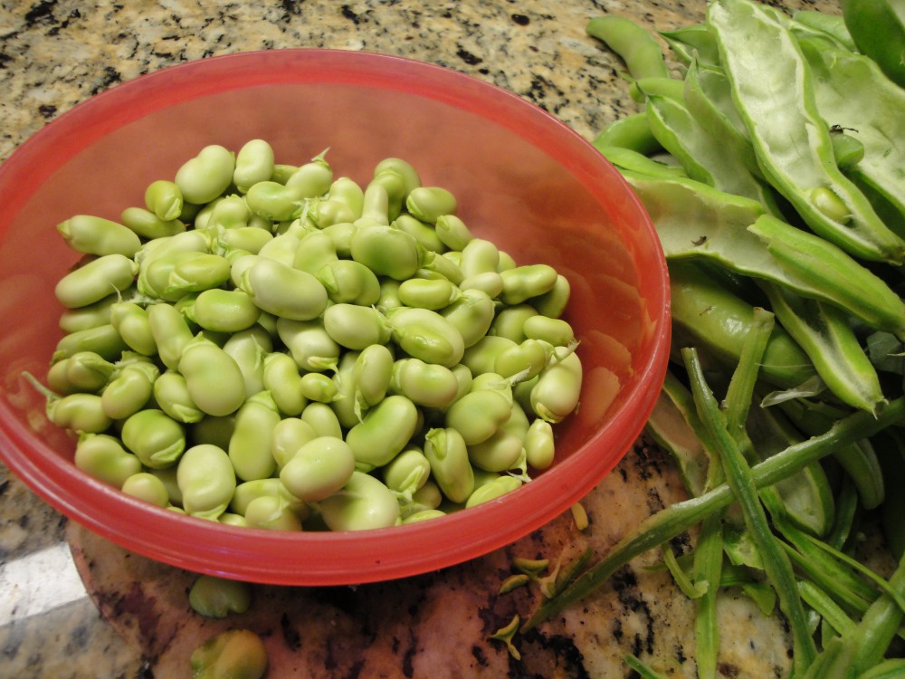 Fava BeansFava Beans, this cover crop is becoming more popular, maybe because it taste so good. It’s a little time consuming, but well worth it, if your lucky enough to get fresh ones , that you grow or from the Farmer’s Market here’s how to prepare them: Unzip, and pop out the bean, (discard the pods, they’re indigestible, but good in compost). If they are different sizes, separate, because the smaller ones will cook faster. Blanch in boiling water 1-2 minutes, larger at first, then 1 minute more with the small ones. Drop them into Ice water, to stop the cooking process. Now they need to be de-skinned. When the beans are cool, pop out the lovely green pieces from the rubbery skin, and your done. At this point you can purée them, which seems to be one of the hot things to do on “Chopped”* or simply re-heat slightly add a pat of sweet butter, and pinch of sea salt. |