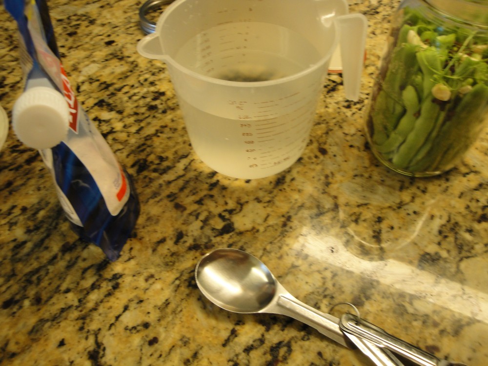 Clean, and snap beans, remove strings. Pack tight into jar, start with it on it’s side. Add a few spices as you fill. When you can’t get any more in, stir the salt into the water and add. You want all the beans covered, but you still want airspace above them. I put a small lid on the beans to help hold them down. Leave them at room temperature for 2- 3 days, until you see the bubbling and you like how they taste. Store them in your refrigerator, they should be good for at least 6 months. |