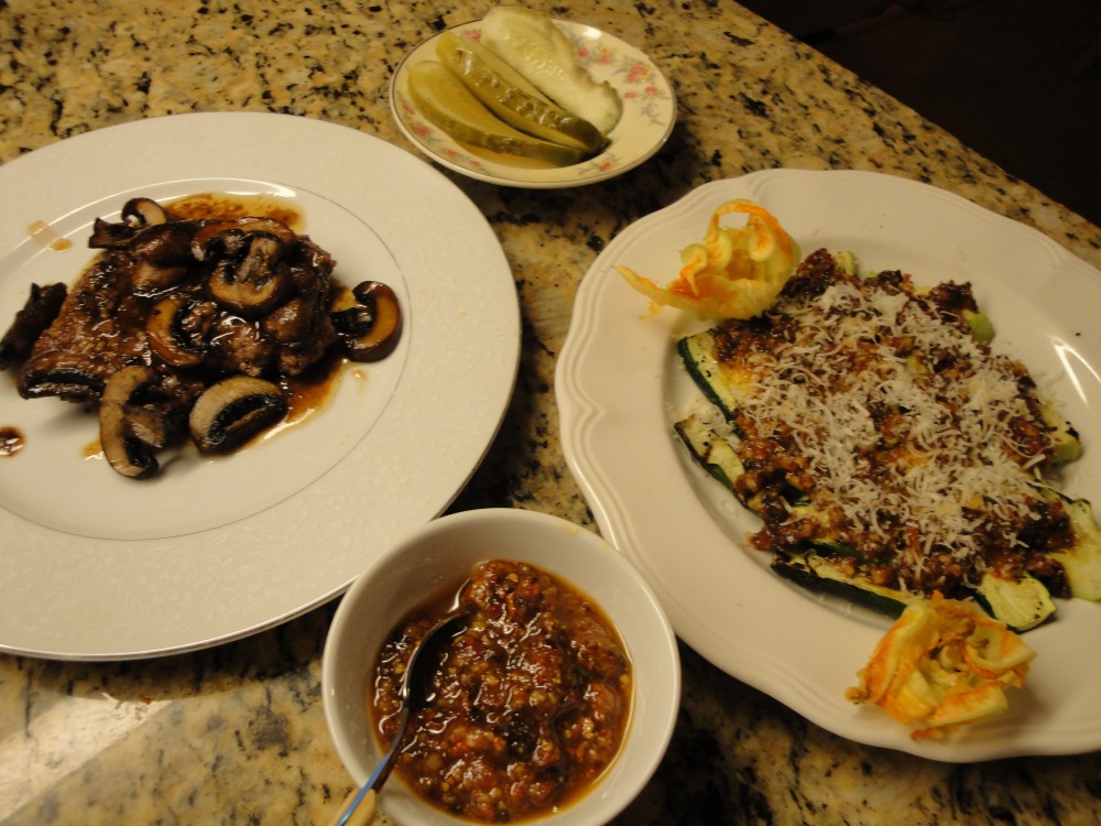 Zucchini Spaghetti & Grass-fed ground beefGrow zucchini or buy it fresh from the Farmer’s Market. The idea for this came to me when I was thinking of all the beautiful tomato sauce, I’ve made, and our zucchini. The portions are just one serving, because I had no clue how it would turn out. It was fabulous, and I think I guessed right on the portions, all though next time I’ll use a bigger squash. Zucchini Spaghetti for One